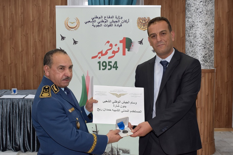في إطار الإحتفالات المخلدة للذكرى الواحد و السبعين(71) لإندلاع ثورة أول نوفمبر 1954 المظفرة، ترأس اللواء الزبير غويلة، قائد القوات الجوية بمقر قيادة القوات الجوية يوم 30 أكتوبر 2025 مراسيم حفل تقليد الرتب و إسداء الأوسمة على الأفراد العسكريين بحضورالإطارات المدعوة للمشاركة في هذه المناسبة.