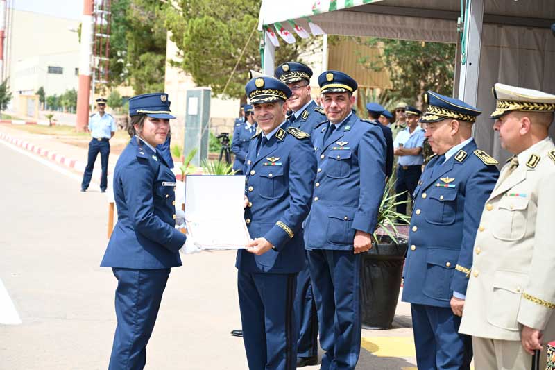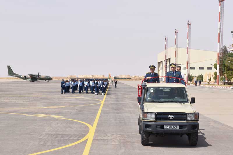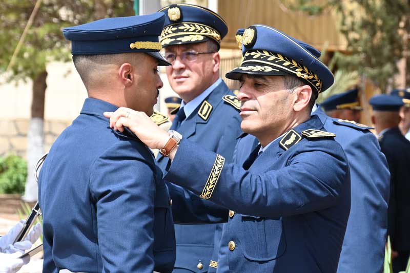 أشرف السيد اللواء حكيم نصر الدين، رئيس أركان قيادة القوات الجوية، يوم 15 جوان 2025 بمدرسة التخصص في طيران القتال الشهيد بورويس محمد بالمشرية/ن.ع2، على حفل تخرج: