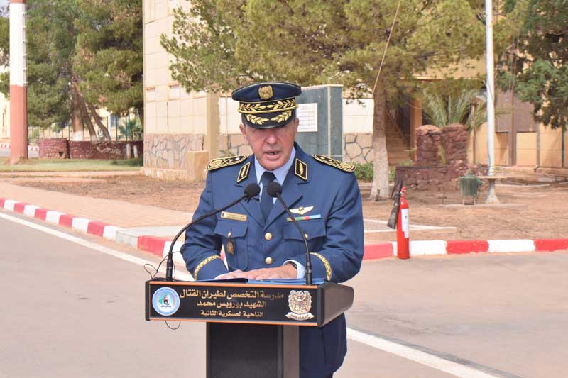 أشرف السيد اللواء غويلة الزبير، رئيس أركان القوات الجوية يوم 11 جوان 2024 بمدرسة التخصص في طيران القتال الشهيد بورويس محمد /المشرية / ن.ع 2 على تخرج الدفعات المتكونة من :