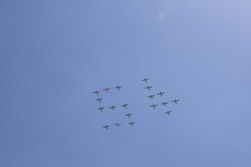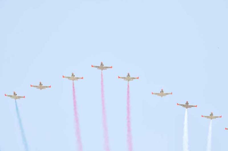 تبع هذا الحفل استعراضات جوية مختلفة، اتسمت بالتحكم التام والتنسيق المحكم بين الطيارين.