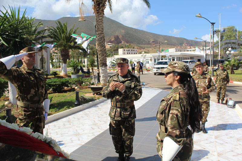èmeRM, où il a été accueilli Monsieur le Général Commandant de la Base Navale Principale Mers El Kébir, et suite à la cérémonie d’accueil, Monsieur le Général-Major Commandant des Forces Navales a déposé une gerbe de fleurs devant la stèle commémorative du Chahid « BOUSSIF Belhadji » dont le siège de la Base Navale porte son nom.