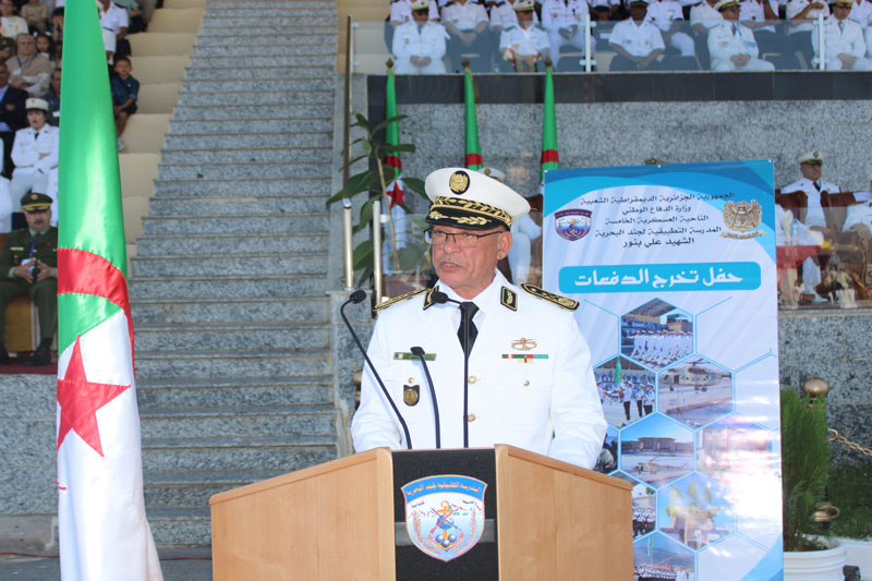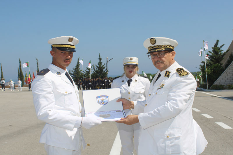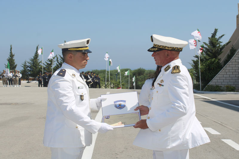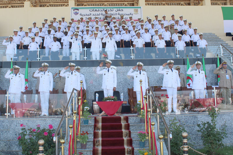 Monsieur Le Général-Major Noureddine KAID, Chef d'Etat-Major des Forces Navales a supervisé, le 23 juin 2025, la cérémonie de sortie de promotions de l’année scolaire 2024-2025 qui porte le nom du Défunt Moudjahid « BENZIADA Taher » à l’Ecole d’Application des Troupes Marine à Jijel/5