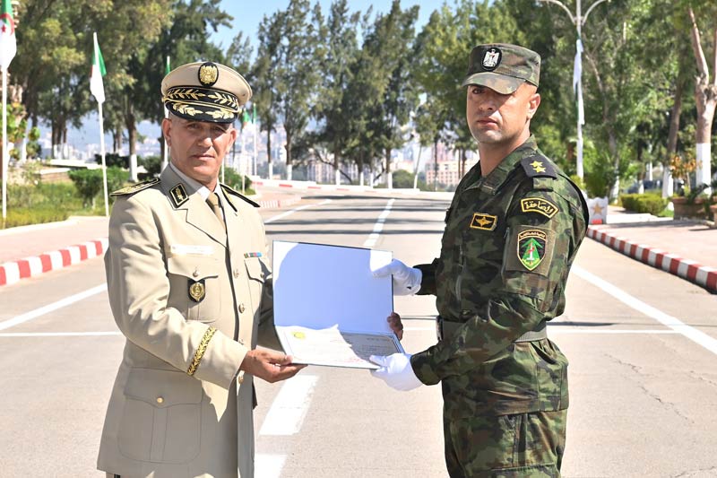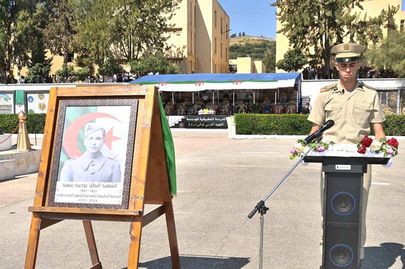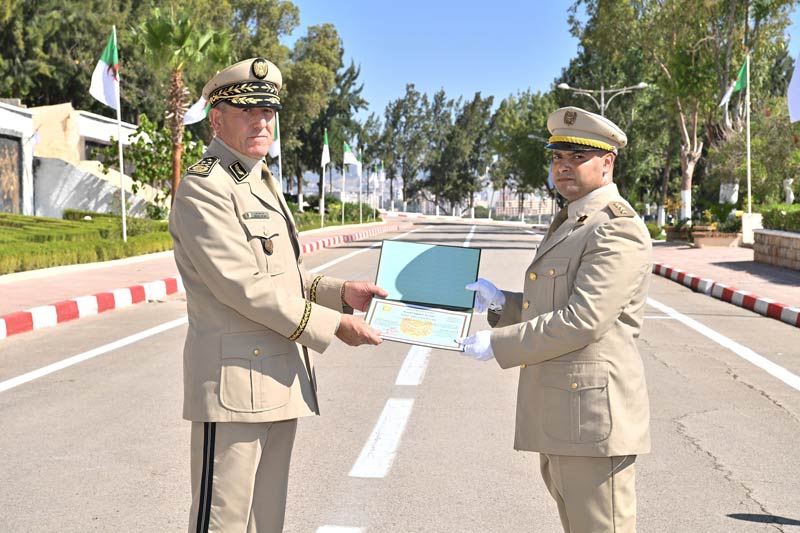 تلاها أداء القسم من طرف الدفعة المتخرجة، ليباشر بعدها السيد اللواء نائب قائد الناحية العسكرية الخامسة تسليم الشهادات وتقليد الرتب للمتفوقين الأوائل من الدفعات، ليتواصل الحفل بتسليم راية المدرسة إلى الدفعة الموالية وتسمية الدفعة بإسم الشهيد البطل "بوحيرد سعيد".