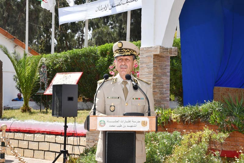 بعد تفتيش الدفعات المتخرجة من طرف السيد اللواء نائب قائد الناحية العسكرية الثانية، ألقى قائد المدرسة كلمة بالمناسبة.