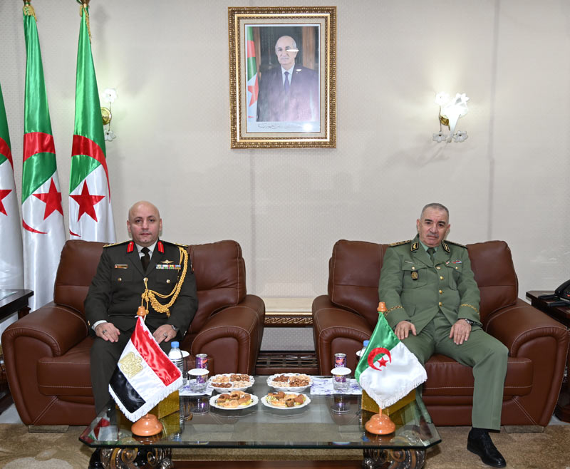 Dans le cadre des visites de présentation, Monsieur le Général-Major Ahcene MESSEHEL, Chef d'Etat-Major des Forces Terrestres, a reçu le 12 novembre 2025, au siège du Commandement des Forces Terrestres, l'Attaché de Défense près l'Ambassade de la République Arabe d'Égypte en Algérie, le Général MOHAMED MOAWED AHMED MOHAMED SOLIMAN.