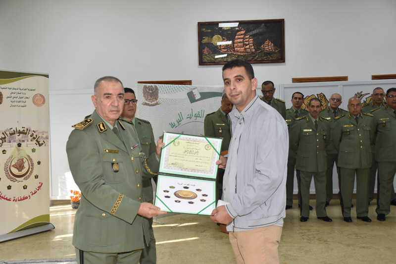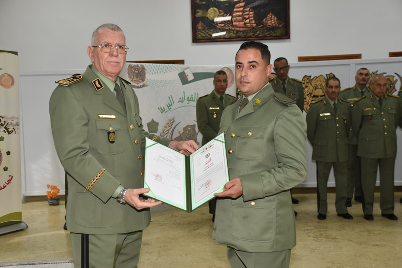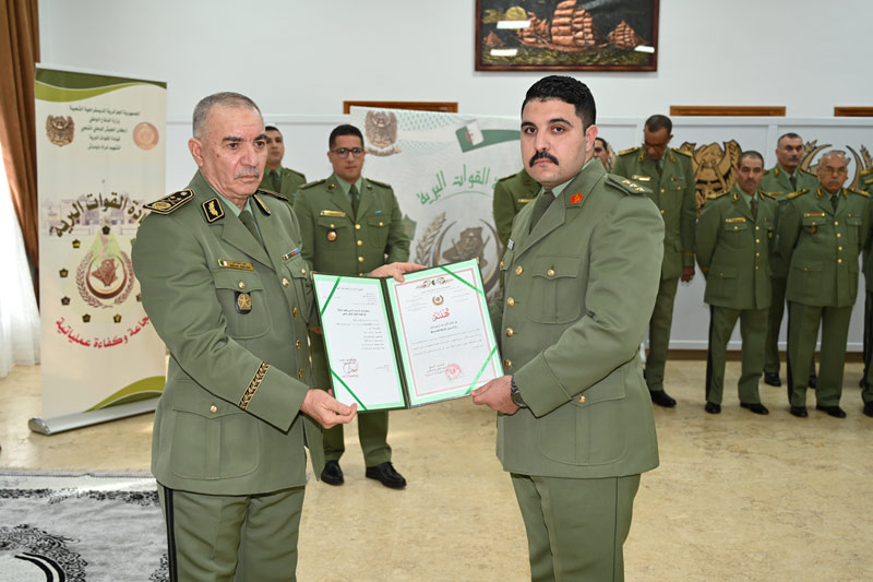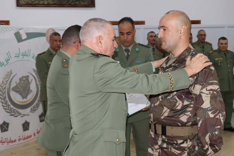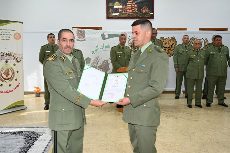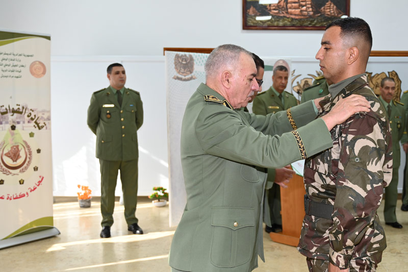 Dans le cadre des cérémonies commémoratives du soixante-et-onzième (71) anniversaire du déclenchement de la glorieuse révolution du 1er Novembre, Monsieur le Général-Major Ahcene Messehel, Chef d'Etat-Major des Forces Terrestres, a présidé le 30 octobre 2025, la cérémonie de remise de grades et des médailles au profit des cadres promus.