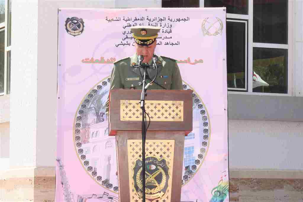 بعد مراسم الإستقبال، قام السيد اللواء بتفتيش مربعات المتخرجين، ليتواصل الحفل بإلقاء قائد المدرسة، كلمة ترحيبية بالسيد اللواء والوفد المرافق له، والتي هنأ فيها الدفعات المتخرجة، منوها بنوعية البرامج التكوينية المنتهجة خلال السنة الدراسية.