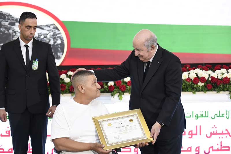 في إطار الاحتفال بالذكرى الرابعة لليوم الوطني للجيش الوطني الشعبي، المصادف للرابع أوت من كل سنة، ترأس السيد عبد المجيد تبون، رئيس الجمهورية، القائد الأعلى للقوات المسلحة، وزير الدفاع الوطني، اليوم الإثنين 04 أوت 2025 بالنادي الوطني للجيش ببني مسوس، مراسم حفل تكريم على شرف متقاعدي الجيش الوطني الشعبي المنحدرين من صفوف جيش التحرير الوطني وعائلات شهداء الواجب الوطني ومعطوبي وكبار جرحى الجيش الوطني الشعبي في مكافحة الإرهاب.