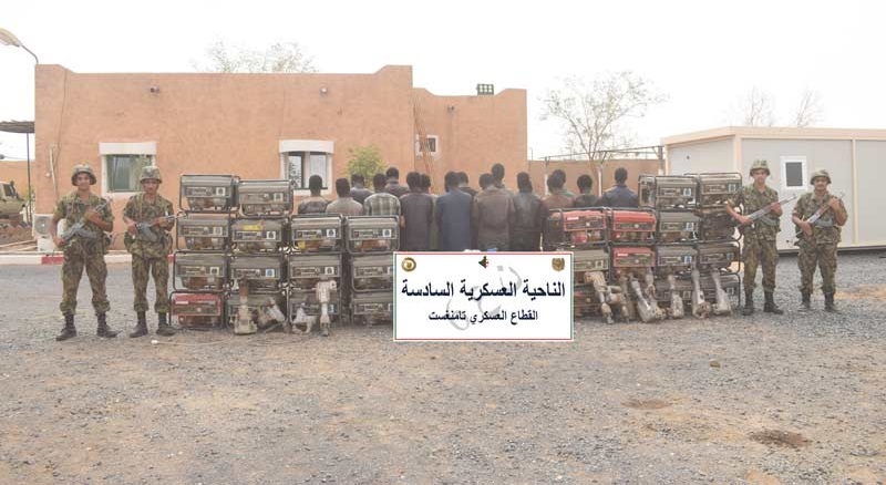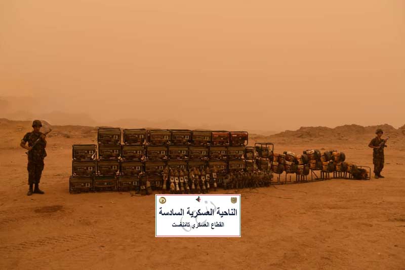 وبكل من تمنراست وبرج باجي مختار وإن صالح وإن ﭭزام وجانت، أوقفت مفارز للجيش الوطني الشعبي، (146) شخصا وضبطت (23) مركبة و(150) مولد كهربائي و(107) مطرقة ضغط و(65) جهاز كشف عن المعادن، بالإضافة إلى كميات من خليط خام الذهب والحجارة وتجهيزات تستعمل في عمليات التنقيب غير المشروع عن الذهب، في حين تم توقيف (6) أشخاص آخرين وضبط (3) مسدسات رشاشة من نوع كلاشنيكوف و(4) بنادق صيد و(32.060) لتر من الوقود، بالإضافة إلى (14) طن من المواد الغذائية الموجهة للتهريب والمضاربة، وهذا خلال عمليات متفرقة.