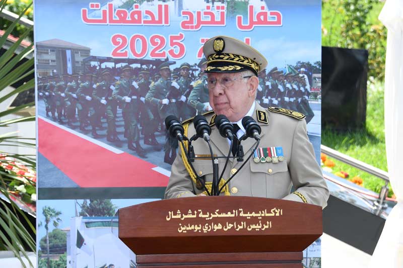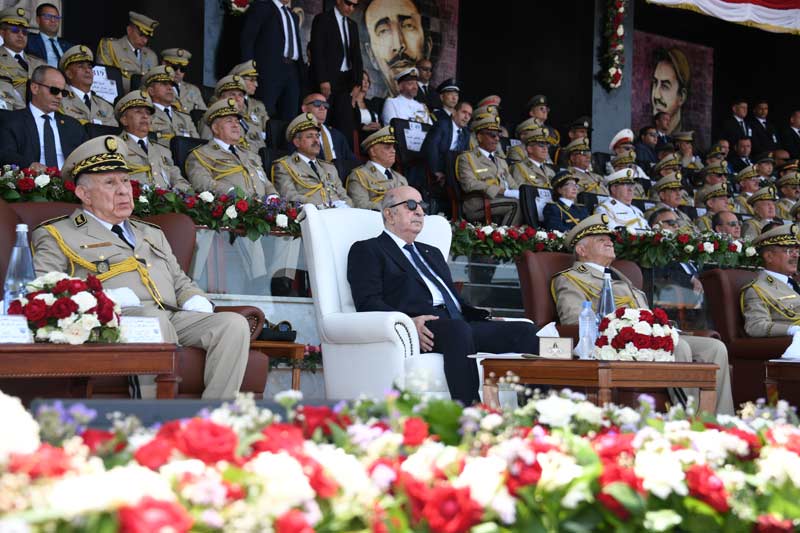 تتويجا لحفلات التخرج السنوية للدفعات بمؤسسات التكوين للجيش الوطني الشعبي، أشرف السيد عبد المجيد تبون رئيس الجمهورية، القائد الأعلى للقوات المسلحة، وزير الدفاع الوطني، صباح اليوم الخميس 10 جويلية 2025، بالأكاديمية العسكرية لشرشال "الرئيس الراحل هواري بومدين"، على مراسم تخرج الدفعة السادسة والخمسين (56) من التكوين الأساسي والدفعة الثامنة عشر (18) من التكوين العسكري القاعدي المشترك، والدفعة التاسعة (09) لضباط دورة الماستر.
