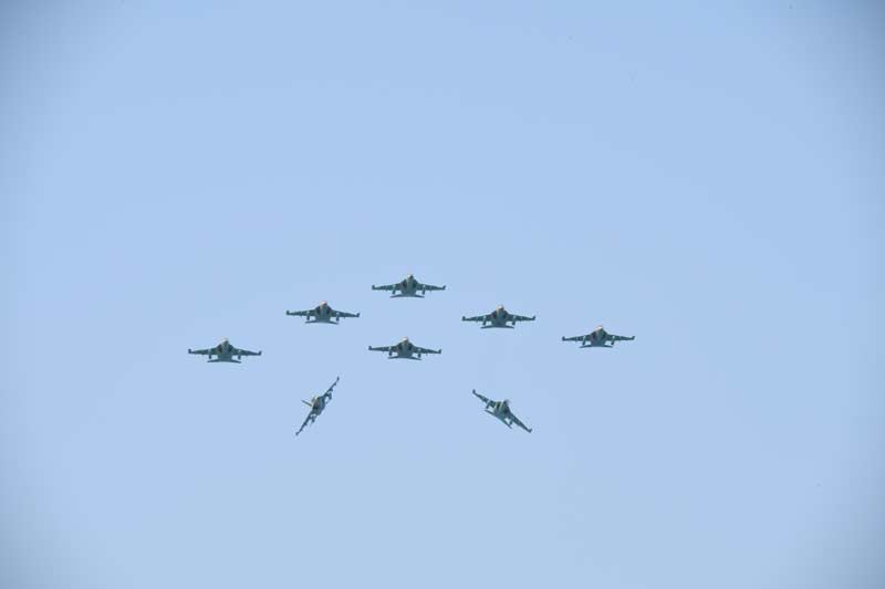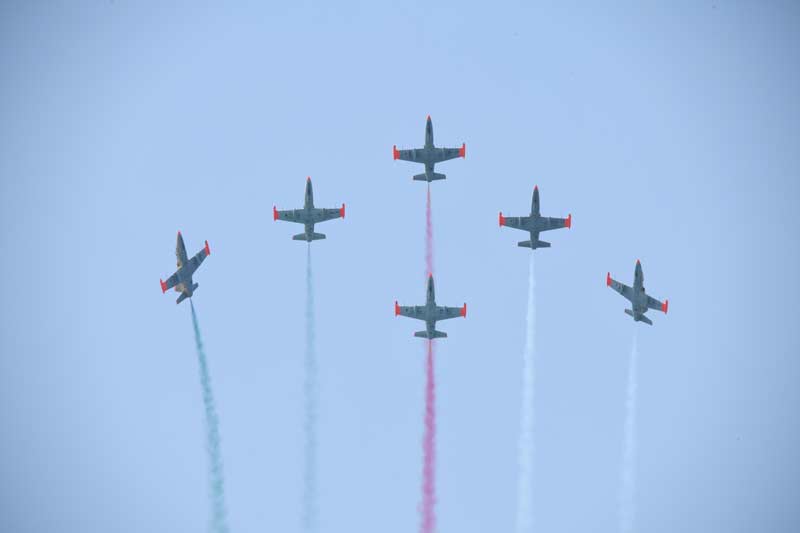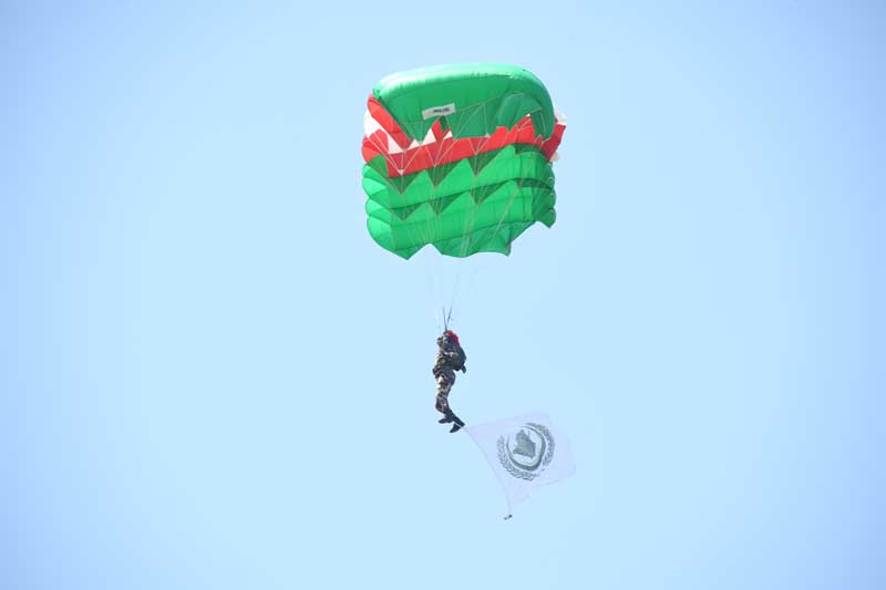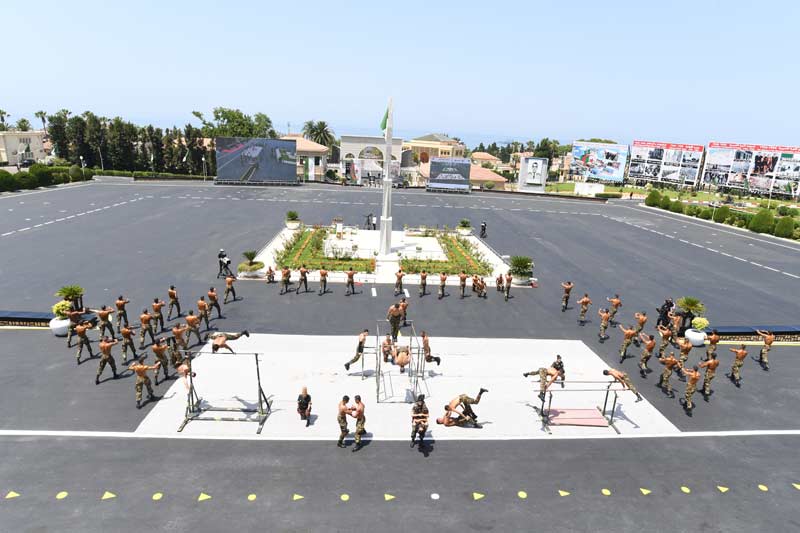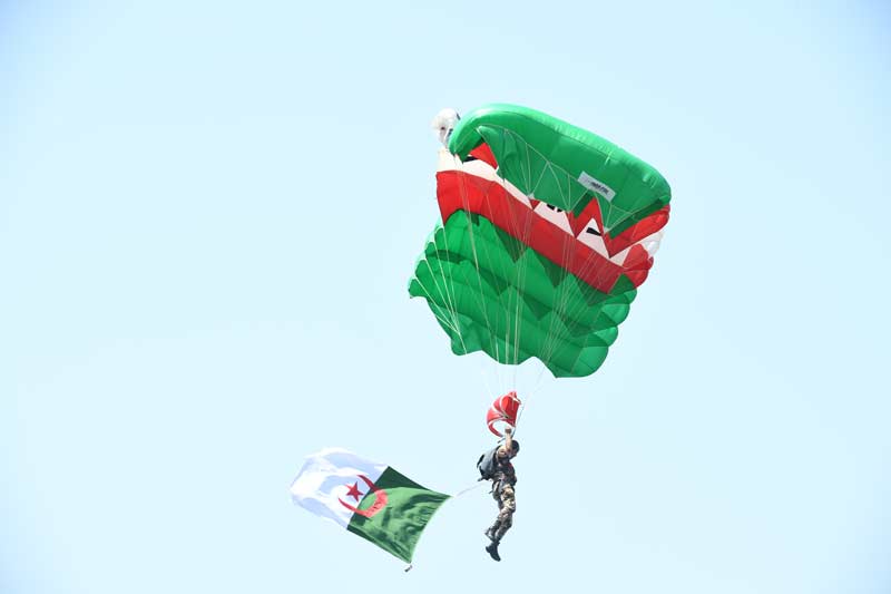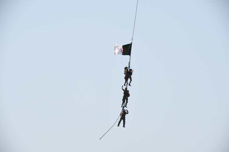 كما شهد حفل التخرج مشاركة القوات الجوية من خلال استعراضات جوية لتشكيلات الطائرات المقاتلة وكذا تزويد الطائرات المقاتلة بالوقود في الجو. ليتابع بعدها السيد رئيس الجمهورية، من خلال شاشة عملاقة، البث المباشر لتمارين بيانية نُفذت في عرض البحر من طرف القوات البحرية، متمثلة في "تحرير رهينة على البر انطلاقا من البحر". بعد ذلك وعقب استعراض في القفز المظلي، تقدمت مجموعة العلم متبوعة بتشكيلات الطلبة الضباط العاملين من التكوين الأساسي والتكوين العسكري القاعدي المشترك باستعراض عسكري تحت إيقاع الموسيقى العسكرية لفرقة الحرس الجمهوري.