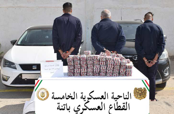 في إطار محاربة الجريمة المنظمة ومواصلة للجهود الحثيثة الهادفة إلى التصدي لآفة الاتجار بالمخدرات ببلادنا، أوقفت مفارز مشتركة للجيش الوطني الشعبي، بالتنسيق مع مختلف مصالح الأمن، (43) تاجر مخدرات وأحبطت محاولات إدخال (3) قناطير و(93) كيلوغرام من الكيف المعالج عبر الحدود مع المغرب، فيما تم حجز (54,77) كيلوغرام من مادة الكوكايين بالناحية العسكرية الرابعة و (430.320) قرص مهلوس، خلال عمليات عبر النواحي العسكرية.