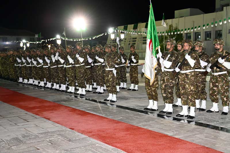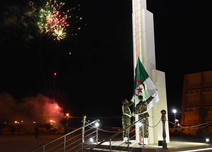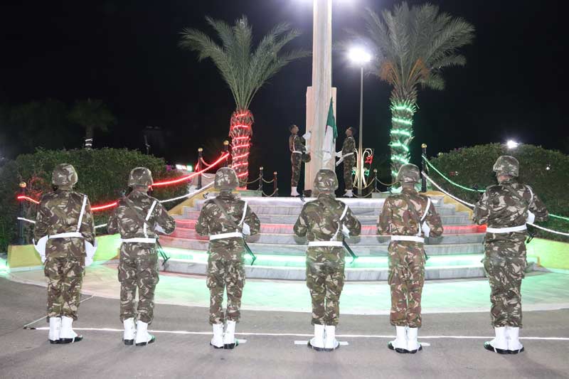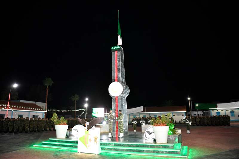 في إطار الاحتفالات المخلدة للذكرى الواحدة والسبعين (71) لاندلاع ثورة الفاتح نوفمبر المجيدة 1954، عرفت كل الهياكل والوحدات التابعة للجيش الوطني الشعبي على غرار مقرات قيادات القوات والنواحي العسكرية، تنظيم تجمعات للمستخدمين ليلة الفاتح من نوفمبر 2025 على الساعة صفر، حيث تم رفع العلم الوطني والوقوف دقيقة صمت ترحما على أرواح شهدائنا الأبرار، وقراءة الأمر اليومي للسيد الفريق أول الوزير المنتدب لدى وزير الدفاع الوطني رئيس أركان الجيش الوطني الشعبي.