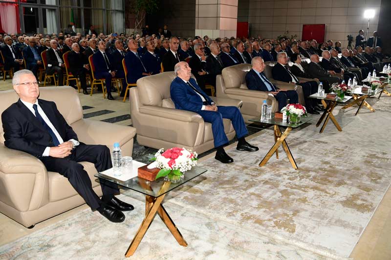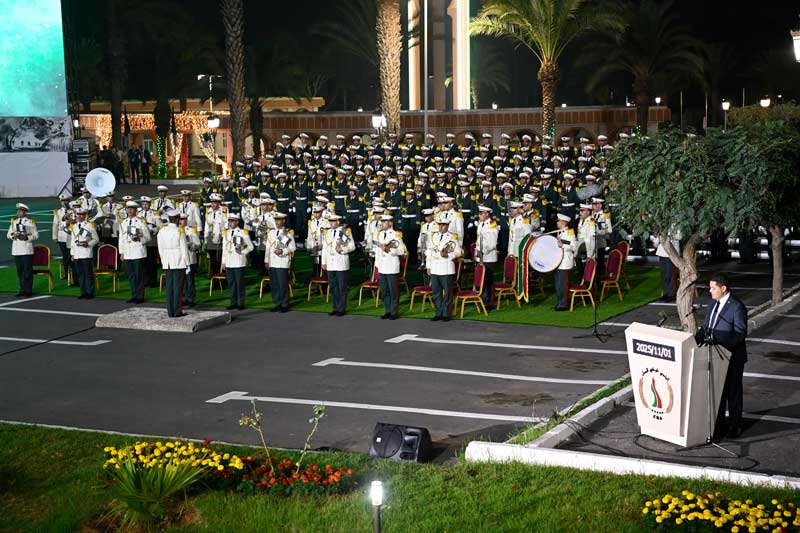 بمناسبة إحياء الذكرى الـ 71 لاندلاع ثورة أول نوفمبر 1954 المجيدة، ترأّس السيّد رئيس الجمهورية عبد المجيد تبون، القائد الأعلى للقوات المسلحة، وزير الدفاع الوطني، مساء يوم السبت الفاتح نوفمبر 2025 بالنادي الوطني للجيش- ببني مسوس، حفلا على شرف إطارات سامية في الجيش الوطني الشعبي من العاملين والمتقاعدين وبحضور عدد من المسؤولين السامين في الدولة. حيث كان في استقبال السيد رئيس الجمهورية بمدخل النادي الوطني للجيش، السيد الفريق أول السعيد شنڤريحة، الوزير المنتدب لدى وزير الدفاع الوطني رئيس أركان الجيش الوطني الشعبي.