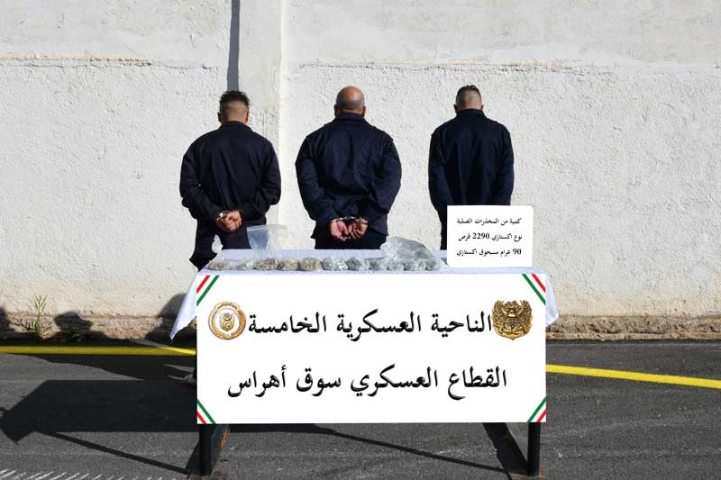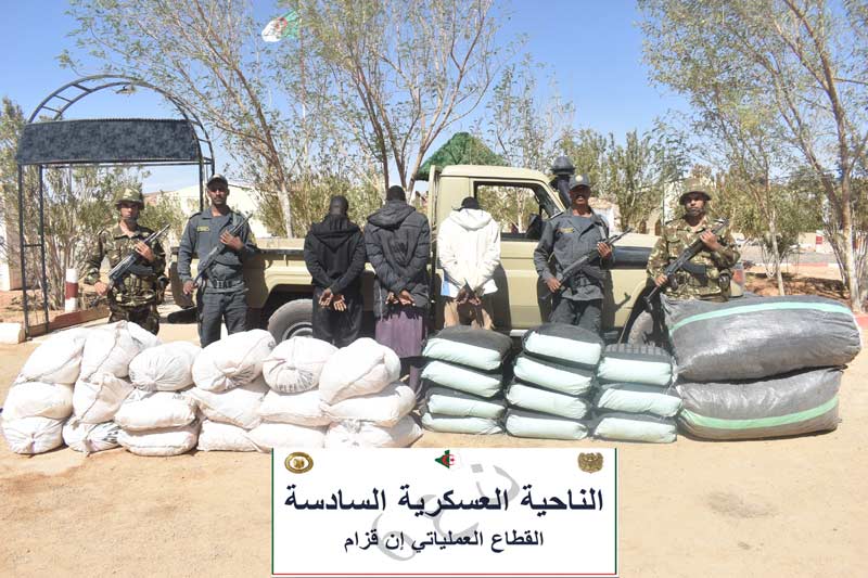 وفي إطار محاربة الجريمة المنظمة ومواصلة للجهود الحثيثة الهادفة إلى التصدي لآفة الاتجار بالمخدرات ببلادنا، أوقفت مفارز مشتركة للجيش الوطني الشعبي، بالتنسيق مع مختلف مصالح الأمن خلال عمليات عبر النواحي العسكرية، (27) تاجر مخدرات وأحبطت محاولات إدخال قنطار (1) و(45) كيلوغرام من الكيف المعالج عبر الحدود مع المغرب، فيما تم ضبط (1,4) كيلوغرام من مادة الكوكايين و(967.504) قرص مهلوس.