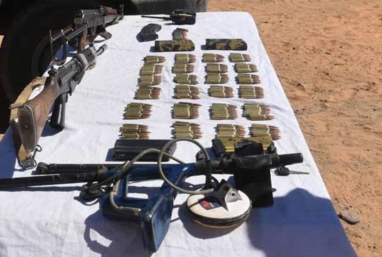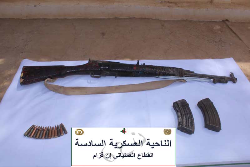 وبكل من تمنراست وبرج باجي مختار وإن صالح وإن قزام وإليزي، أوقفت مفارز للجيش الوطني الشعبي (204) شخصا وضبطت (52) مركبة و(208) مولدا كهربائيا و(144) مطرقة ضغط، بالإضافة إلى كميات من خليط خام الذهب والحجارة وتجهيزات تستعمل في عمليات التنقيب غير المشروع عن الذهب، في حين تم توقيف (12) شخصا آخر وضبط (5) مسدسات رشاشة من نوع كلاشنيكوف وبندقية (1) قناصة و(10) بنادق صيد و(47.778) لتر من الوقود، بالإضافة إلى (14) قنطار من مادة التبغ و(44) طن من المواد الغذائية الموجهة للتهريب والمضاربة، وهذا خلال عمليات متفرقة.