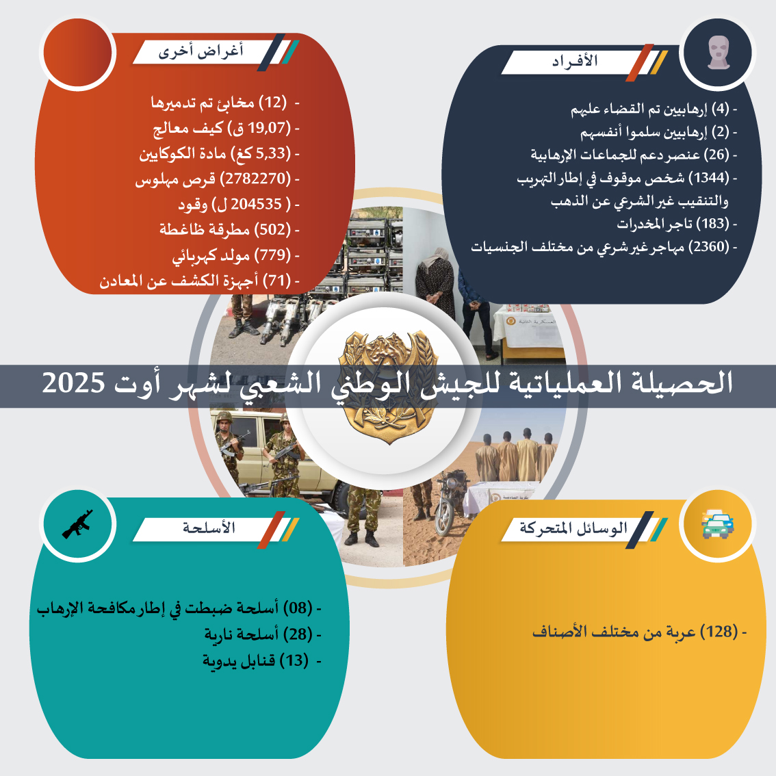 الحصيلة العملياتية للجيش الوطني الشعبي لشهر أوت 2025