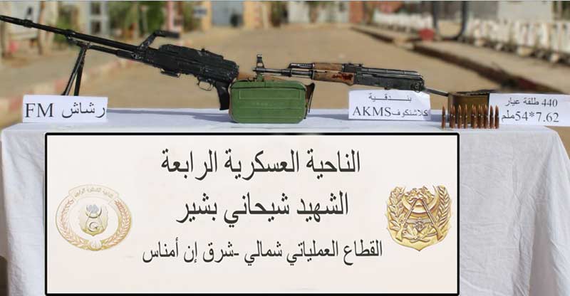 في إطار مكافحة الإرهاب وبفضل جهود وحدات الجيش الوطني الشعبي، تمكنت مفارز للجيش الوطني الشعبي بالقطاع العسكري بتيبازة من القضاء على إرهابيين (2) إثنين، واسترجاع بندقية (1) رشاشة من نوع FMPK ومسدس (1) رشاش من نوع كلاشينكوف ومنظار وأغراض أخرى.