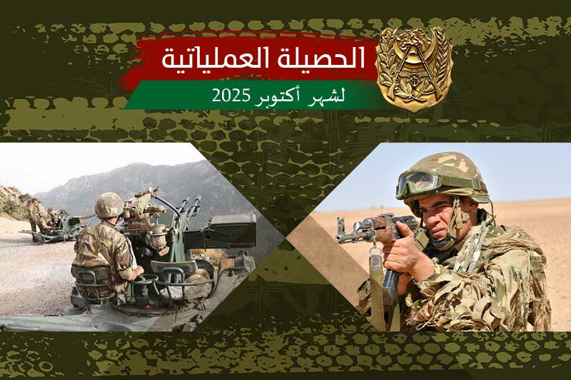 في سياق الجهود المتواصلة المبذولة في مكافحة الإرهاب ومحاربة الجريمة المنظمة بكل أشكالها، نفذت وحدات ومفارز للجيش الوطني الشعبي، خلال الفترة الممتدة من 08 إلى 14 أكتوبر 2025، عديد العمليات التي أسفرت عن نتائج نوعية تعكس مدى الاحترافية العالية واليقظة والاستعداد الدائمين لقواتنا المسلحة في كامل التراب الوطني...