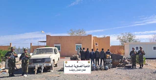 A Tamanrasset, Bordj Badji Mokhtar, In Salah et Illizi, des détachements de l'Armée Nationale Populaire ont arrêté (303) individus et saisi (27) véhicules, (311) groupes électrogènes, (148) marteaux piqueurs ainsi que des quantités de mélange d’or brut et de pierres, d'explosifs, d'outils de détonation et d'équipements utilisés dans des opérations d'orpaillage illicite. De même, (11) autres individus ont été arrêtés et (8) fusils de chasse, (5) pistolets automatiques, (33.600) litres de carburants, ainsi que (59,60) tonnes de denrées alimentaires destinées à la contrebande et la spéculation ont été saisis.