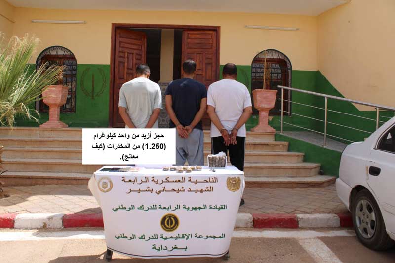 Dans le cadre de la lutte contre la criminalité organisée et en continuité des efforts déployés afin de contrecarrer le fléau du narcotrafic dans notre pays, des détachements combinés de l'Armée Nationale Populaire ont intercepté, en coordination avec les différents services de sécurité, lors d'opérations exécutées à travers les Régions Militaires, (41) narcotrafiquants et mis en échec des tentatives d’introduction de (4) quintaux et (78) kilogrammes de kif traité provenant des frontières avec le Maroc, alors que (1.150.627) comprimés psychotropes ont été saisis.