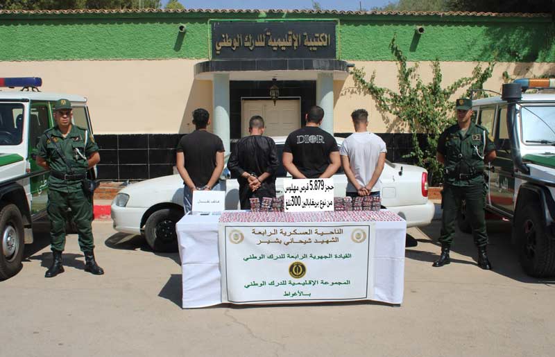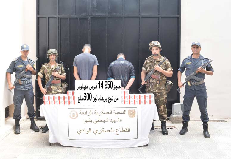 Dans le cadre de la lutte contre la criminalité organisée et en continuité des efforts déployés afin de contrecarrer le fléau du narcotrafic dans notre pays, des détachements combinés de l'Armée Nationale Populaire ont intercepté, en coordination avec les différents services de sécurité, lors d'opérations exécutées à travers les Régions Militaires, (44) narcotrafiquants et mis en échec des tentatives d’introduction de (3) quintaux et (3) kilogrammes de kif traité provenant des frontières avec le Maroc, alors que (889.505) comprimés psychotropes ont été saisis.