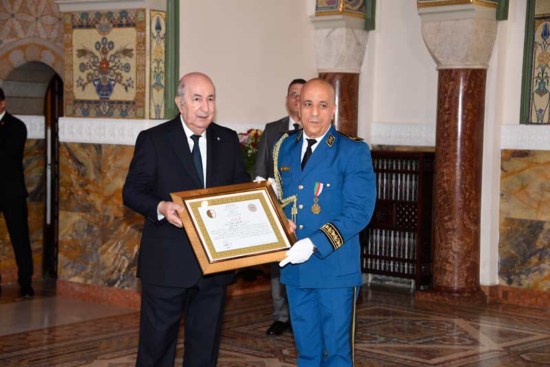 Au début de cette cérémonie, Monsieur le Président de la République a supervisé, en compagnie de Monsieur le Général d’Armée et de hauts responsables de l’Etat, la cérémonie de remise de grades, qui a connu la promotion du Général-major Moustapha SMAILI, Commandant des Forces Terrestres, au grade de Général de Corps d’Armée, la promotion d’un nombre de Généraux au grade de Général-major, et de Colonels au grade de Général. Les promotions ont, également, concerné la catégorie des officiers supérieurs, ainsi que la remise de médailles à un nombre d’officiers supérieurs et de personnels civils.
