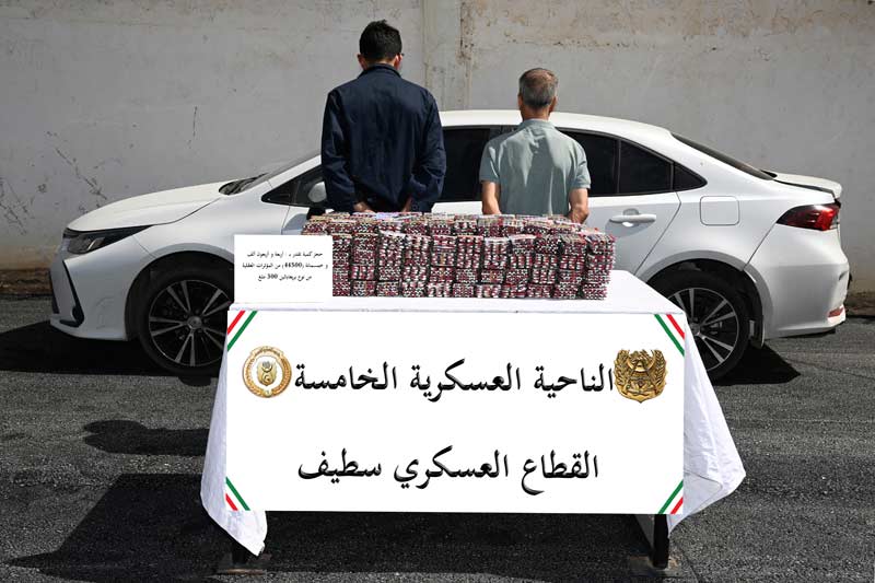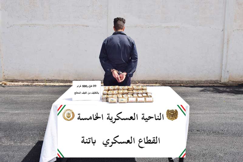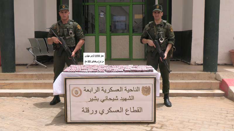 Dans le cadre de la lutte contre la criminalité organisée et en continuité des efforts déployés afin de contrecarrer le fléau du narcotrafic dans notre pays, des détachements combinés de l'Armée Nationale Populaire ont intercepté, en coordination avec les différents services de sécurité, lors d'opérations exécutées à travers les Régions Militaires, (43) narcotrafiquants et mis en échec des tentatives d’introduction de (5) quintaux et (95) kilogrammes de kif traité provenant des frontières avec le Maroc, alors que (107.344) comprimés psychotropes ont été saisis.