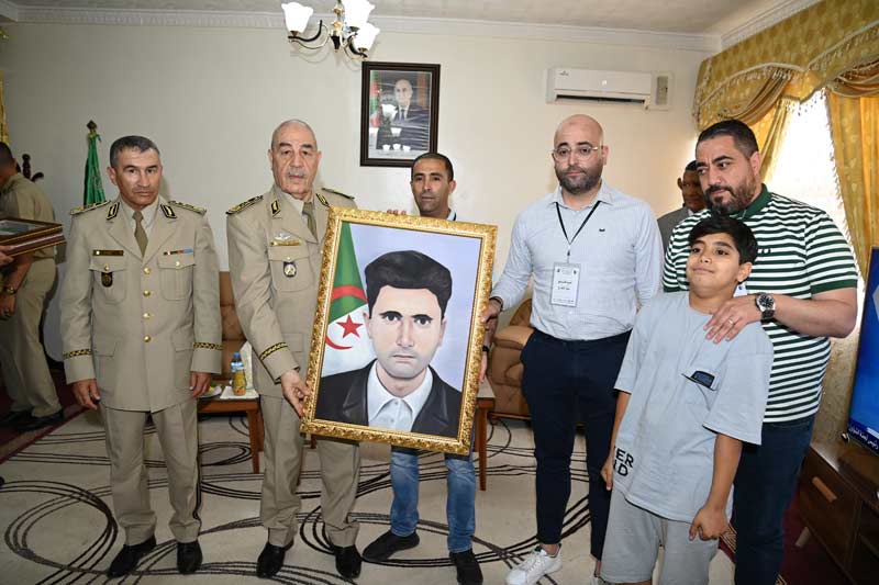 A l’issue de la cérémonie, le Général Major Hambli Noureedine , Commandant de la 5ème Région Militaire, a rendu un hommage à la famille du Chahid "CHETARA Mohamed".