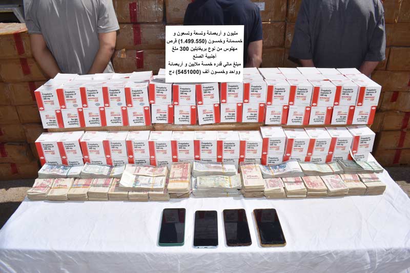 Dans la dynamique des efforts soutenus contre la criminalité organisée multiforme, les services compétants de la sécurité de l’armée en coordination avec les Douanes Algériennes ont arrêté, hier 08 juin 2025, au niveau du Secteur Militaire de Batna/5°RM, trois (03) criminels, et saisi un (01) camion citerne transportant une quantité importante de comprimés psychotropes s’élevant à un million quatre cent quatre vingt dix neuf mille cinq cent cinquante (1499550) comprimés de type Prégabaline 300 mg et une somme d’argent qui s’élève à Cinq Millions quatre- cent cinquante – un mille ( 5451000) DA.