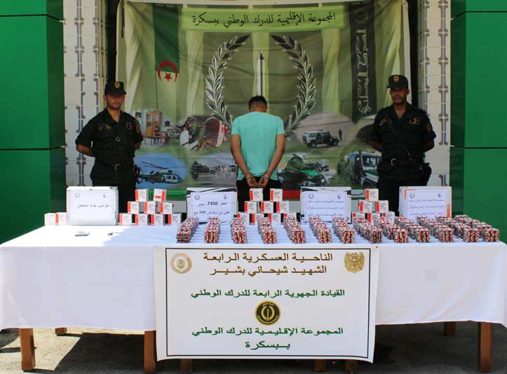 Dans le cadre de la lutte contre la criminalité organisée et en continuité des efforts soutenus visant à contrecarrer le fléau du narcotrafic dans notre pays, des détachements combinés de l'Armée Nationale Populaire ont intercepté, en coordination avec les différents services de sécurité, (36) narcotrafiquants et mis en échec des tentatives d’introduction de (8) quintaux et (68) kilogrammes de kif traité provenant des frontières avec le Maroc, alors que (50) kilogrammes de cocaïne