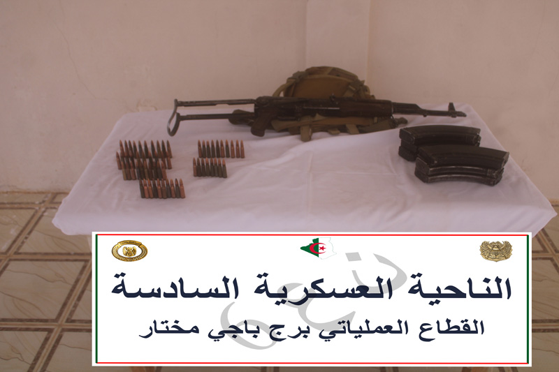 Dans le cadre de la lutte antiterroriste et grâce aux efforts des unités de l’Armée Nationale Populaire, le terroriste dénommé Berbouchi Saidou, alias «Abdelaziz» s’est rendu aux autorités militaires de Bordj Badji Mokhtar en 6ème Région Militaire, en sa possession un (1) pistolet mitrailleur de type Kalachnikov, une quantité de munitions et d’autres effets, tandis que d’autres détachements de l'Armée Nationale Populaire ont arrêté (11) éléments de soutien aux groupes terroristes, dans différentes opérations à travers le territoire national.