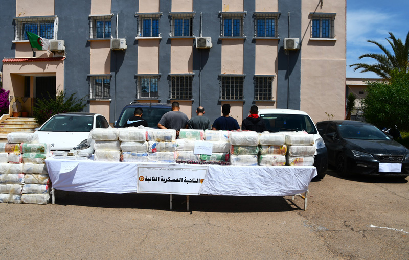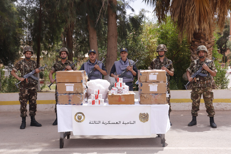Dans le cadre de la lutte contre la criminalité organisée et en continuité des efforts soutenus visant à contrecarrer le fléau du narcotrafic dans notre pays, des détachements combinés de l'Armée Nationale Populaire ont intercepté, en coordination avec les différents services de sécurité, (40) narcotrafiquants et mis en échec des tentatives d’introduction de (3) quintaux et (39) kilogrammes de kif traité provenant des frontières avec le Maroc, alors que (17,86) kilogrammes de cocaïne et (3.743.658) comprimés psychotropes ont été saisis, lors d'opérations exécutées à travers les Régions Militaires .