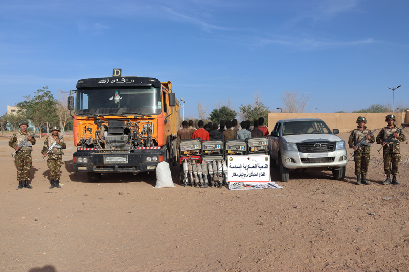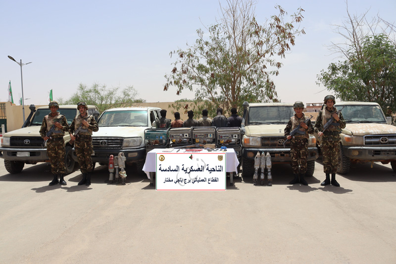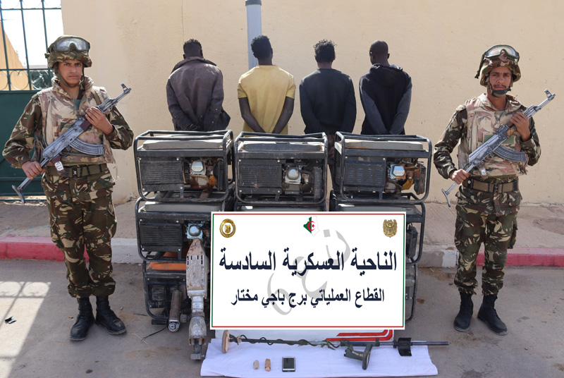 A Tamanrasset, Bordj Badji Mokhtar, In Salah et In Guezzam, des détachements de l'Armée Nationale Populaire ont arrêté (438) individus et saisi (41) véhicules, (137) groupes électrogènes, (80) marteaux piqueurs, (9) détecteurs de métaux, ainsi que des quantités de mélange d’or brut et de pierres, d'explosifs, d'outils de détonation et d'équipements utilisés dans des opérations d'orpaillage illicite. De même, (12) autres individus ont été arrêtés et (4) fusils de chasse, (278.600) litres de carburants, ainsi que (5,85) tonnes de denrées alimentaires destinées à la contrebande et la spéculation ont été saisis, lors de différentes opérations.