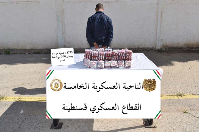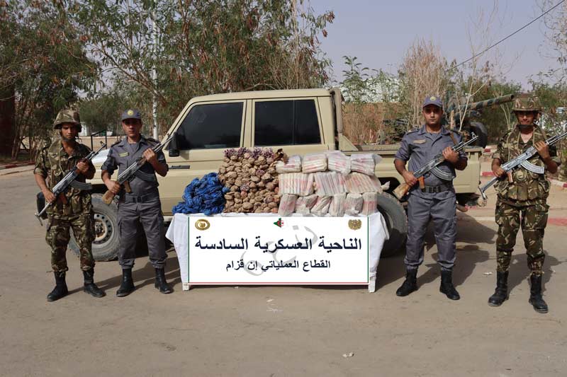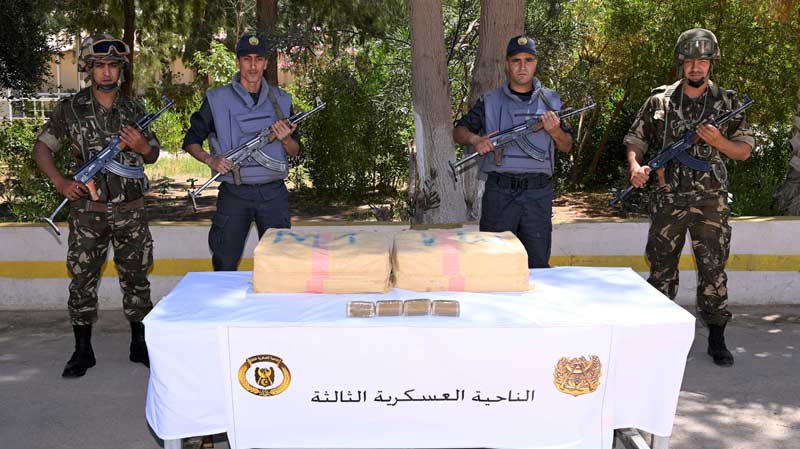 Dans le cadre de la lutte contre la criminalité organisée et en continuité des efforts soutenus visant à contrecarrer le fléau du narcotrafic dans notre pays, des détachements combinés de l'Armée Nationale Populaire ont intercepté, en coordination avec les différents services de sécurité, (50) narcotrafiquants et mis en échec des tentatives d’introduction de deux (2) quintaux et (80) kilogrammes de kif traité provenant des frontières avec le Maroc, alors que (1.86) kilogramme de cocaïne et (214.830) comprimés psychotropes ont été saisis, lors d'opérations exécutées à travers les Régions Militaires .