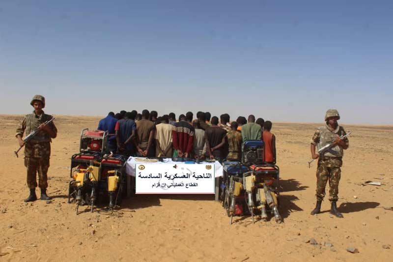 A Tamanrasset, Bordj Badji Mokhtar, In Salah, In Guezzam et Djanet, des détachements de l'Armée Nationale Populaire ont arrêté (627) individus et saisi (19) véhicules, (254) groupes électrogènes, (227) marteaux piqueurs, (04) détecteurs de métaux, ainsi que des quantités de mélange d’or brut et de pierres et d'équipements utilisés dans des opérations d'orpaillage illicite. De même, (10) autres individus ont été appréhendés et un (1) pistolet mitrailleur de type kalachnikov, (9) fusils de chasse, (51.630) litres de carburants, (357) quintaux de tabac, ainsi que (30,5) tonnes de denrées alimentaires destinées à la contrebande et la spéculation ont été saisis, et ce, lors d’opérations distinctes.